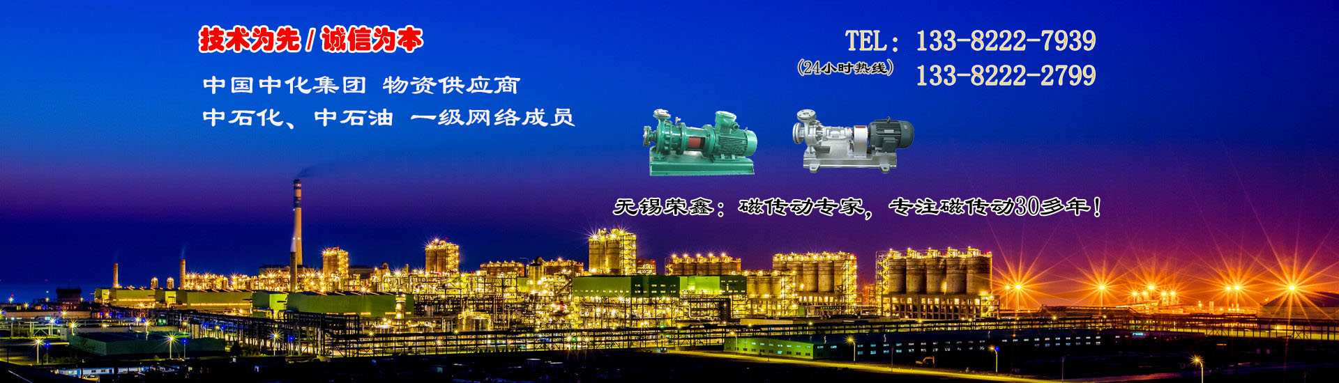 榮鑫泵業,中石化中石油一級網絡成員,中國中化集團物資供應商 .   專業研制磁傳動系列產品(磁力泵、磁力攪拌釜、磁性過濾器):安全無泄漏 .